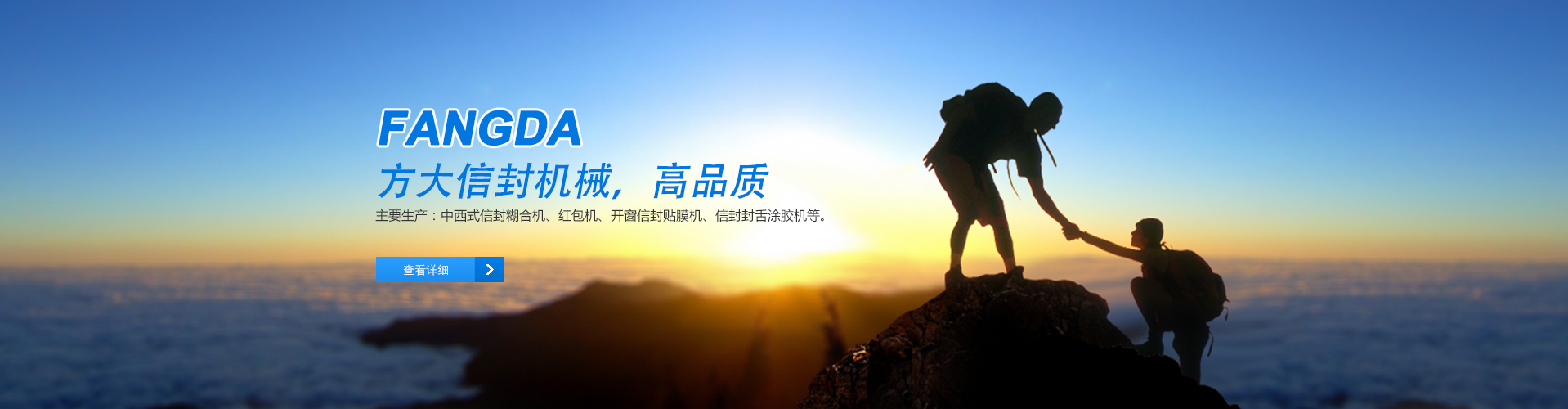 瑞安方大信封機械有限公司,是專業(yè)生產(chǎn)信封機糊合設備系列產(chǎn)品的企業(yè),主要產(chǎn)品有:中西式信封糊合機、紅包機、開窗信封貼膜機、信封封舌涂膠機等。實力來自規(guī)模,品質源自專業(yè)。我廠擁有專業(yè)老練的工程設計人員,經(jīng)驗豐富的生產(chǎn)安裝人員,嚴謹認真的質量檢驗人員,從而保證了所生產(chǎn)機械的優(yōu)良品質。此外,我廠也將從技術上、性能上不斷改進提高,以更好的滿足客戶的需求。“客戶至上,服務為本”是我廠長期一貫的服務理念,從安裝、測試、保養(yǎng)、維修等售后服務,我們會給予客戶充足的信息資訊與技術支持,因此在業(yè)界獲得良好的口碑及信譽,您的滿意是我們的榮耀!歡迎您來電查詢、來人參觀,我們一定能給你滿意的答復!秉承“顧客至上,銳意進取”的經(jīng)營理念,堅持“客戶為先”的原則為廣大客戶提供溫馨的服務。歡迎惠顧!